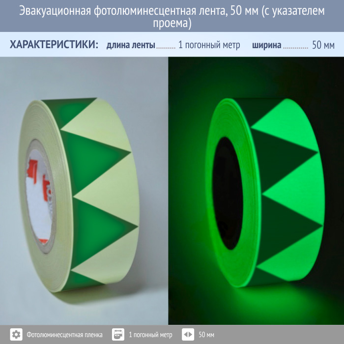 Эвакуационная фотолюминесцентная лента, 50 мм (с указателем проема) в Фрязино купить