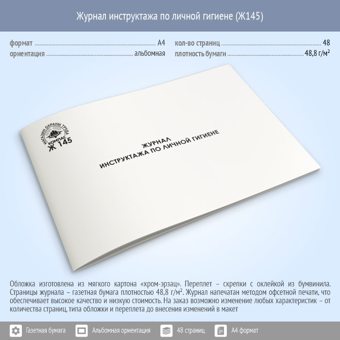 Журнал инструктажа по личной гигиене (48 стр., Ж145) в Фрязино купить