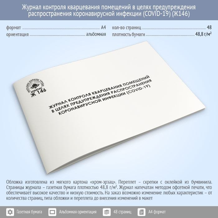 Журнал контроля кварцевания помещений в целях предупреждения распространения коронавирусной инфекции (COVID-19) (48 стр., Ж146) в Фрязино купить
