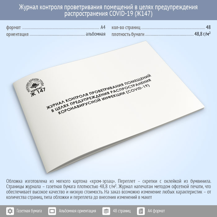Журнал контроля проветривания помещений в целях предупреждения распространения коронавирусной инфекции (COVID-19) (48 стр., Ж147) в Фрязино купить