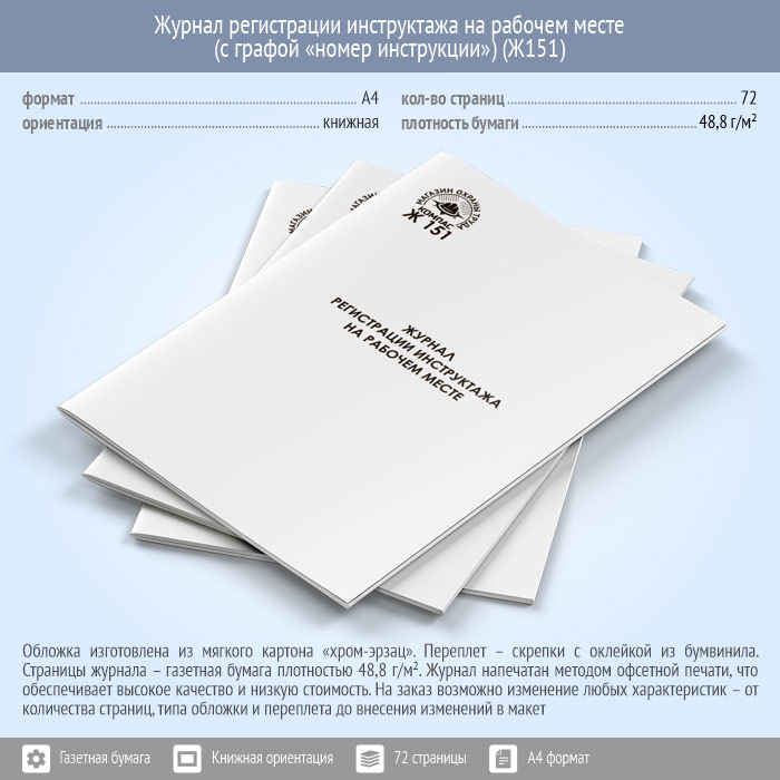 Журнал регистрации инструктажа на рабочем месте (с графой «номер инструкции») (72 стр., Ж151) в Фрязино купить