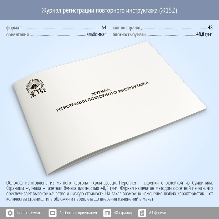 Журнал регистрации повторного инструктажа (48 стр., Ж152) в Фрязино купить