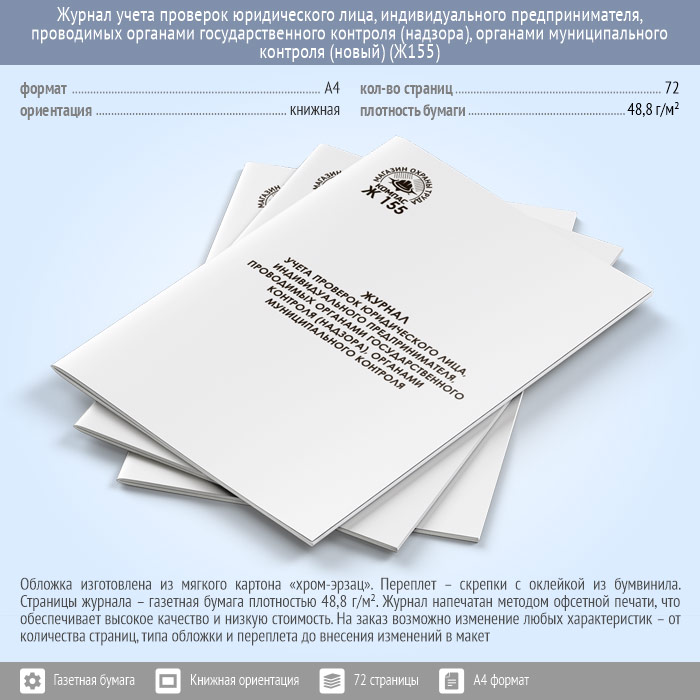 Журнал учета проверок юридического лица, индивидуального предпринимателя, проводимых органами государственного контроля (надзора), органами муниципального контроля (новый) (72 стр., Ж155) в Фрязино купить