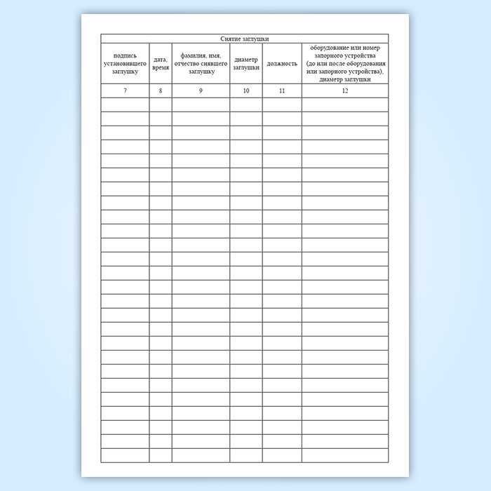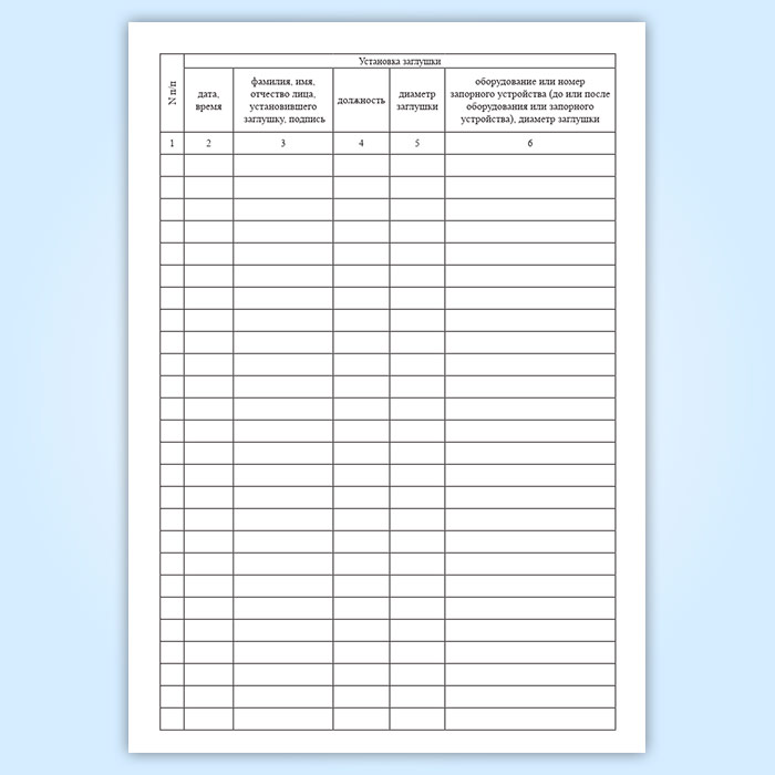 Журнал установки и снятия заглушек в Фрязино купить