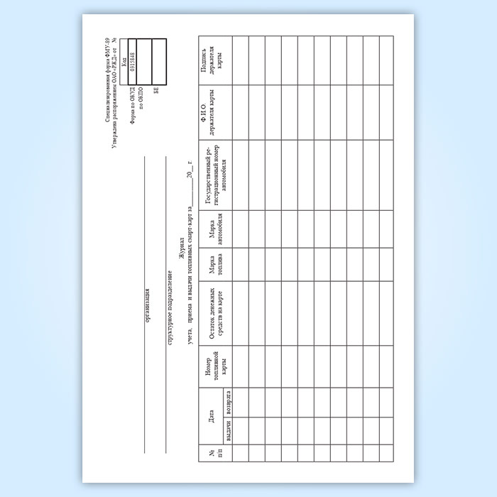 Журнал учета, приема и выдачи топливных смарт-карт в Фрязино купить