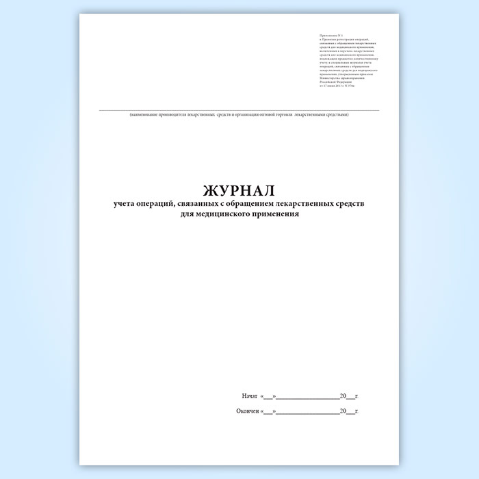 Журнал учета операций, связанных с обращением лекарственных средств для медицинского применения (для производителя лекарственных средств и организации оптовой торговли лекарственными средствами) в Фрязино купить