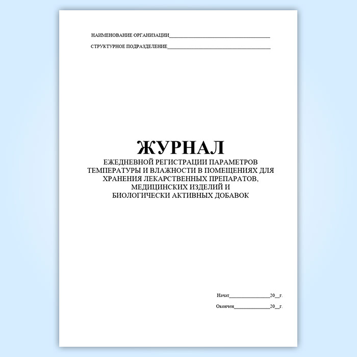 Журнал ежедневной регистрации параметров температуры и влажности в помещениях для хранения лекарственных препаратов, медицинских изделий и биологически активных добавок в Фрязино купить