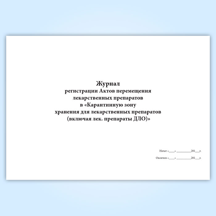 Журнал регистрации Актов перемещения лекарственных препаратов в «Карантинную зону хранения для лекарственных препаратов (включая лек. препараты ДЛО)» в Фрязино купить