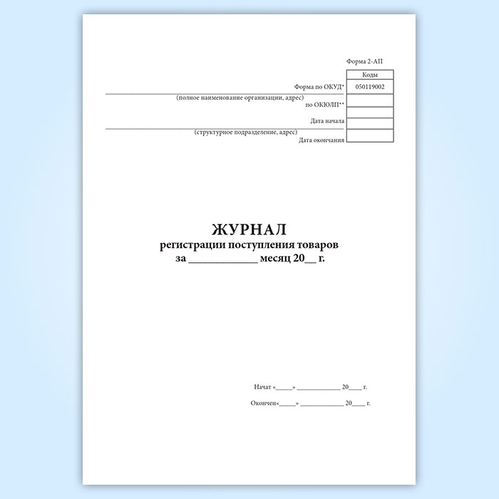 Журнал регистрации поступления товаров (форма 2-АП) в Фрязино купить