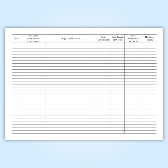 Журнал учета поломки аттракционов и игровых автоматов в Фрязино купить