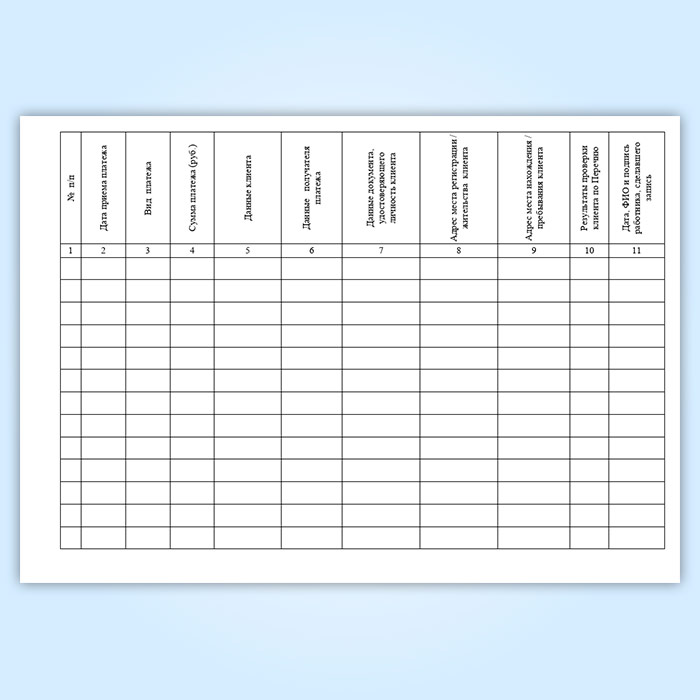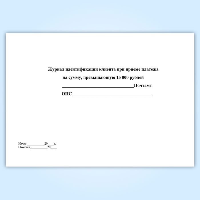 Журнал идентификации клиента при приеме платежа на сумму, превышающую 15 000 рублей в Фрязино купить