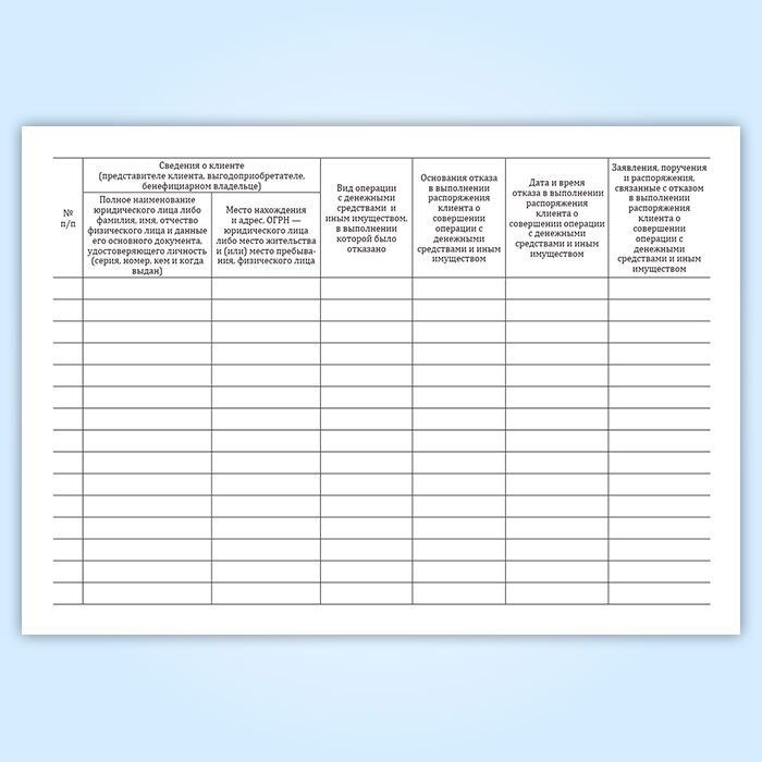 Журнал учета отказов в выполнении распоряжения клиентов о совершении операции с денежными средствами и иным имуществом в Фрязино купить