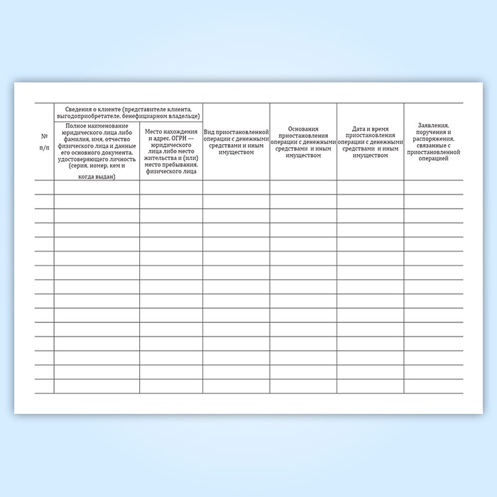 Журнал учета приостановленных операций с денежными средствами и иным имуществом клиента в Фрязино купить