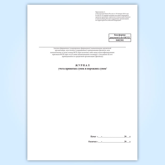 Журнал учета принятых сумок и порожних сумок (форма по ОКУД 0402301) в Фрязино купить