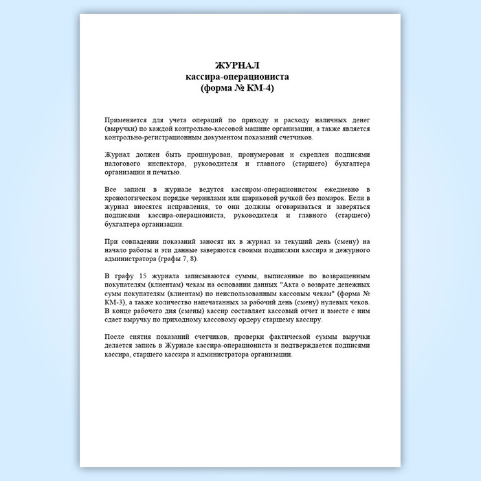 Журнал кассира-операциониста, вертикальный (форма № КМ-4) в Фрязино купить