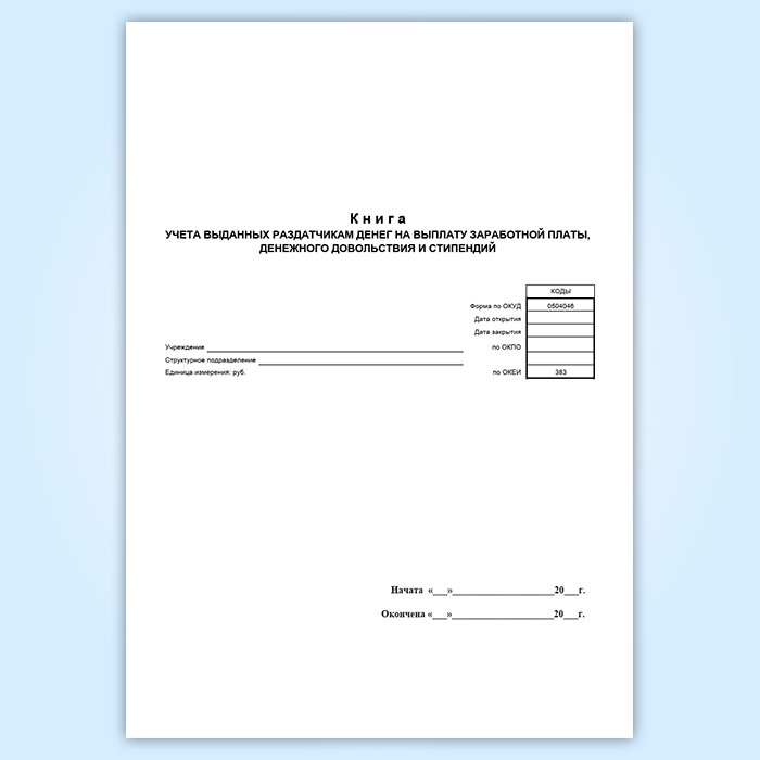 Книга учета выданных раздатчикам денег на выплату заработной платы, денежного довольствия и стипендий (форма по ОКУД 0504046) в Фрязино купить
