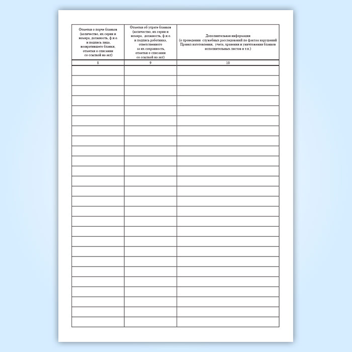 Вы получаете печатную продукцию прошнурованной и c местом для вашей печати в соответствии с действующими нормативными документами: