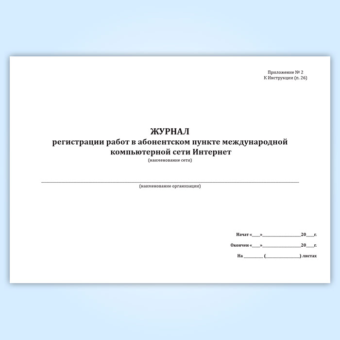 Журнал регистрации работ в абонентском пункте международной компьютерной сети Интернет в Фрязино купить
