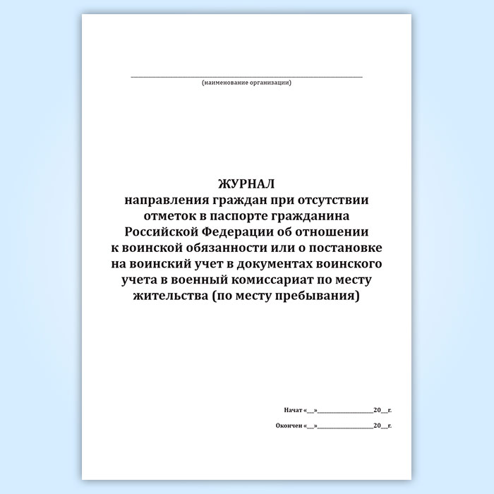 Журнал направления граждан при отсутствии отметок в паспорте гражданина Российской Федерации об отношении к воинской обязанности или о постановке на воинский учет в документах воинского учета в военный комиссариат по месту жительства (по месту пребывания) в Фрязино купить