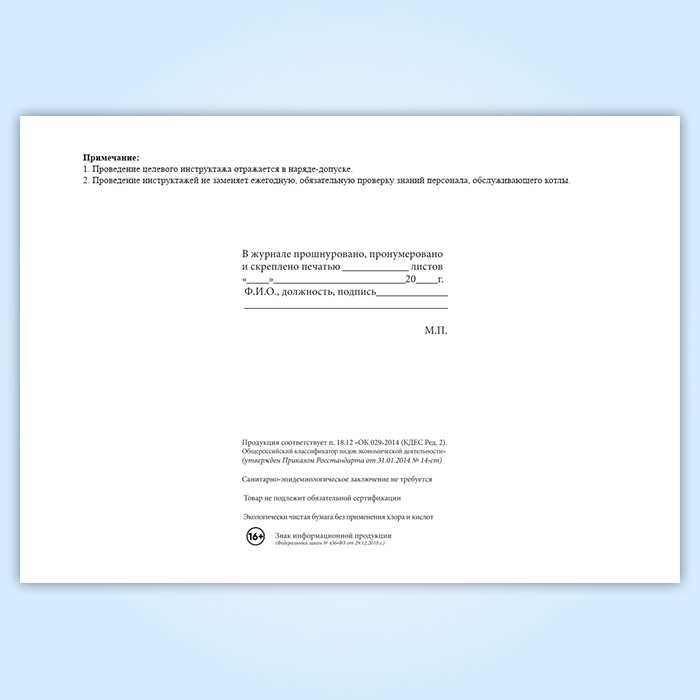 Вы получаете печатную продукцию прошнурованной и c местом для вашей печати в соответствии с действующими нормативными документами:
