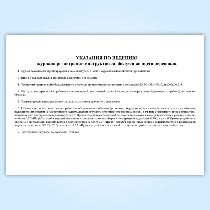 Журнал регистрации инструктажей обслуживающего персонала котельной (для воинских частей, предприятий и организаций) в Фрязино купить