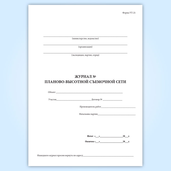 Журнал планово-высотной съемочной сети (форма УТ-21) в Фрязино купить