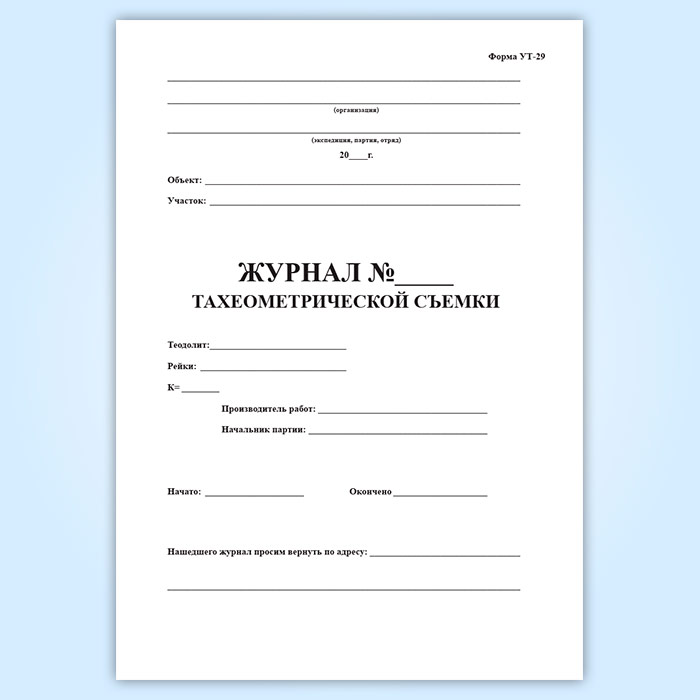 Журнал тахеометрической съемки (форма УТ-29) в Фрязино купить