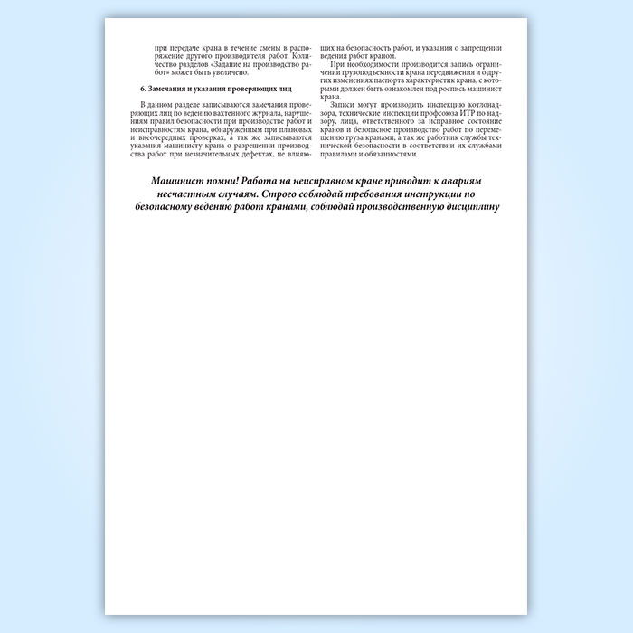 Вахтенный журнал приема-сдачи смен машинистами крана в Фрязино купить