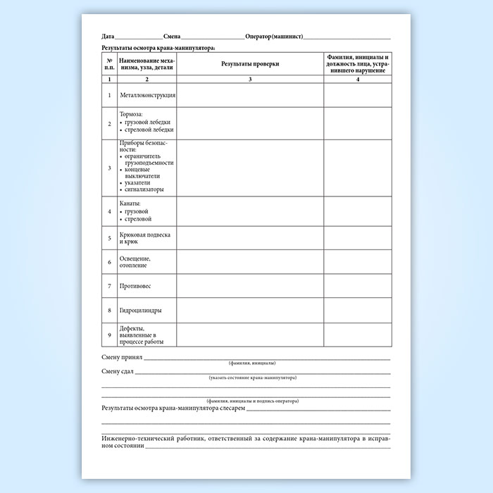 Вахтенный журнал приема-сдачи смен машинистами крана-манипулятора в Фрязино купить