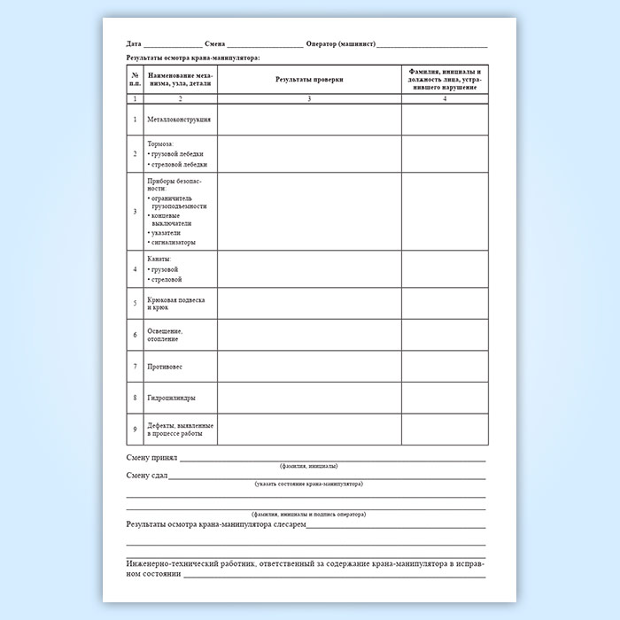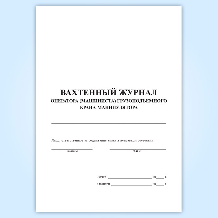 Вахтенный журнал оператора (машиниста) грузоподъемного крана-манипулятора в Фрязино купить