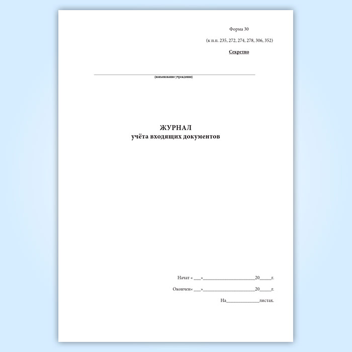 Журнал учета входящих документов (форма № 30) в Фрязино купить