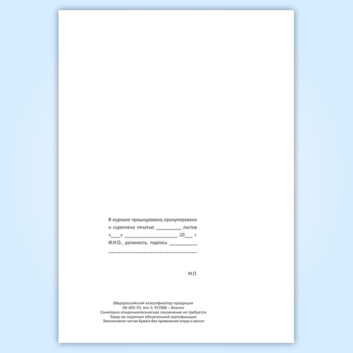 Вы получаете печатную продукцию прошнурованной и c местом для вашей печати в соответствии с действующими нормативными документами: