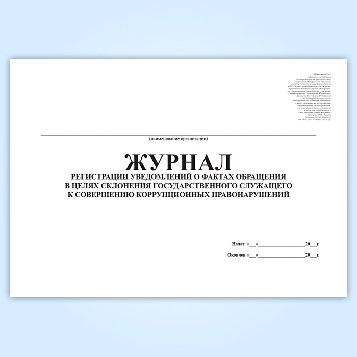 Журнал регистрации уведомлений о фактах обращения в целях склонения государственного служащего к совершению коррупционных правонарушений в Фрязино купить