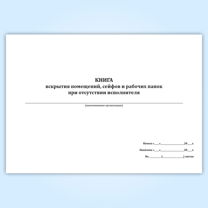 Книга вскрытия помещений, сейфов и рабочих папок при отсутствии исполнителя в Фрязино купить
