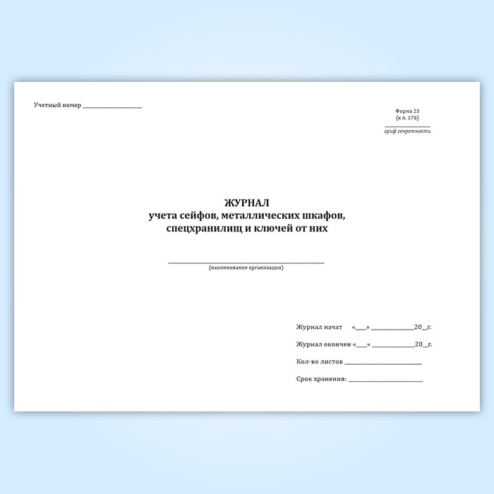 Журнал учета сейфов, металлических шкафов, спецхранилищ и ключей от них в Фрязино купить