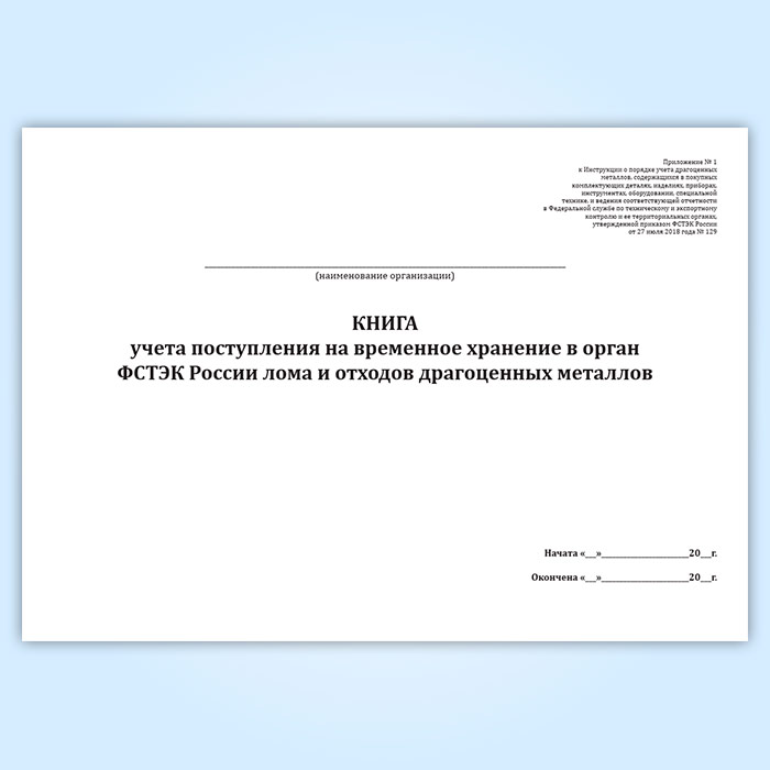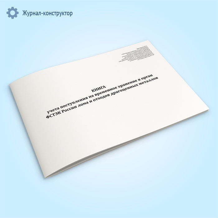 Книга учета поступления на временное хранение в орган ФСТЭК России лома и отходов драгоценных металлов в Фрязино купить