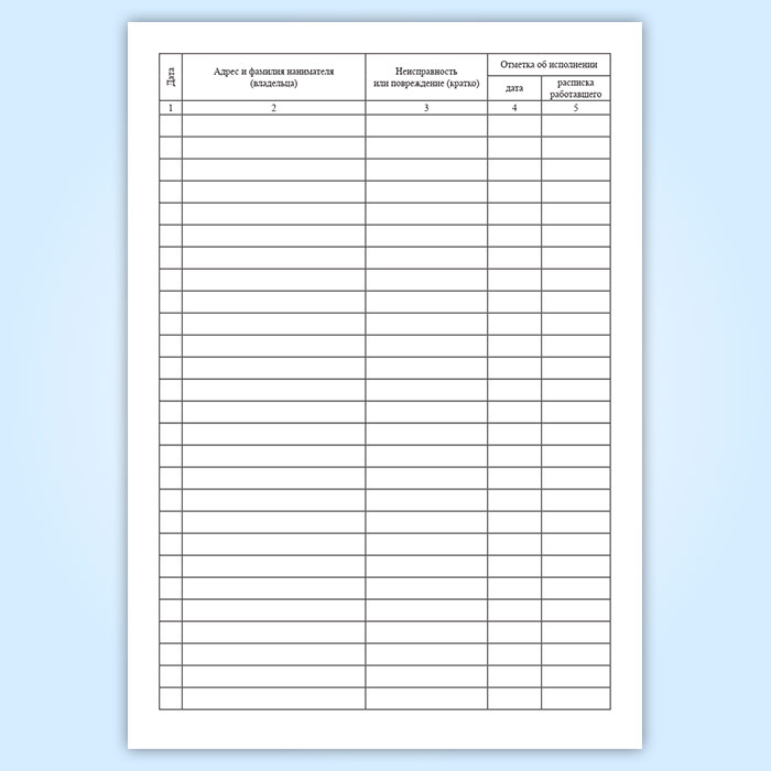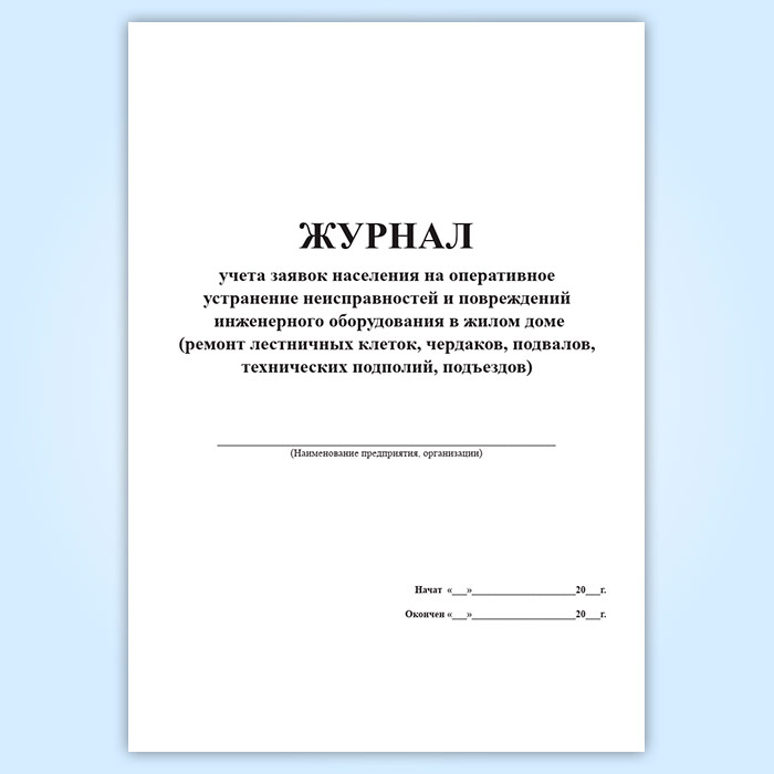 Журнал учета заявок населения на оперативное устранение неисправностей и повреждений инженерного оборудования в жилом доме ремонт лестничных клеток, чердаков, подвалов, технических подполий, подъездов в Фрязино купить