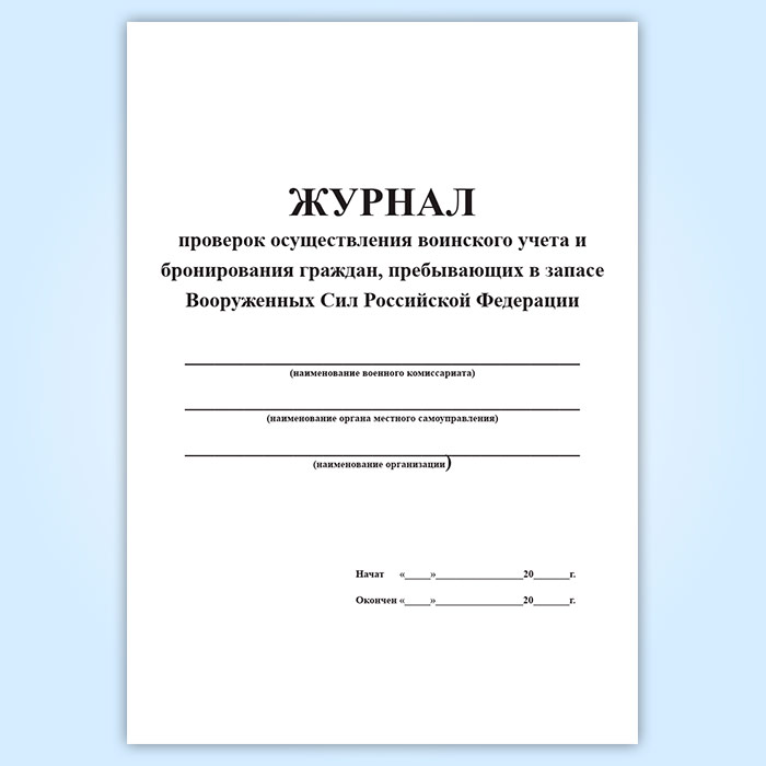 Журнал проверок осуществления воинского учета и бронирования граждан, пребывающих в запасе Вооруженных Сил Российской Федерации в Фрязино купить