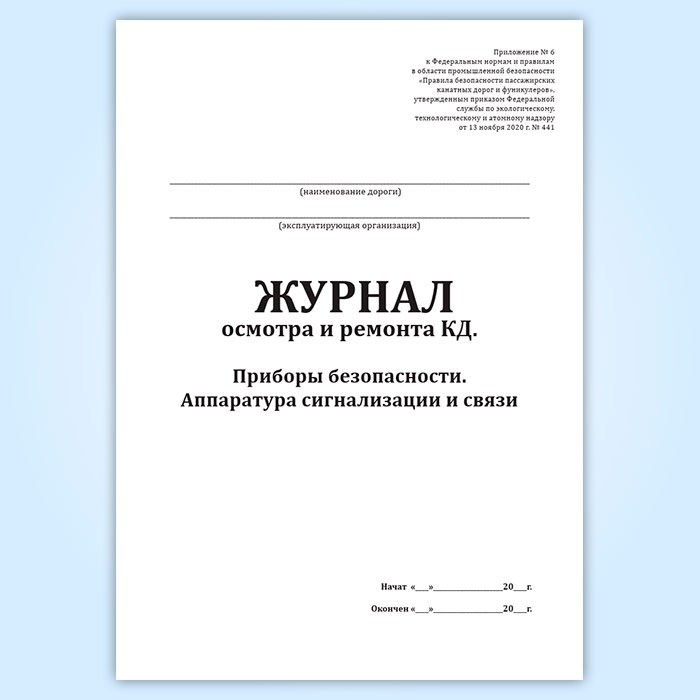 Журнал осмотра и ремонта канатной дороги. Приборы безопасности. Аппаратура сигнализации и связи (форма № 9) в Фрязино купить