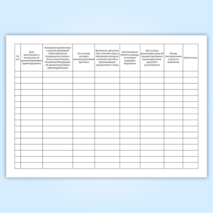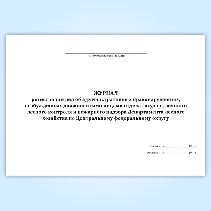 Журнал регистрации дел об административных правонарушениях, возбужденных должностными лицами отдела государственного лесного контроля и пожарного надзора Департамента лесного хозяйства по Центральному федеральному округу в Фрязино купить