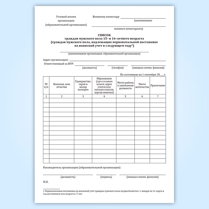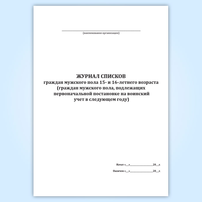 Журнал списков граждан мужского пола 15- и 16-летнего возраста (граждан мужского пола, подлежащих первоначальной постановке на воинский учет в следующем году) в Фрязино купить