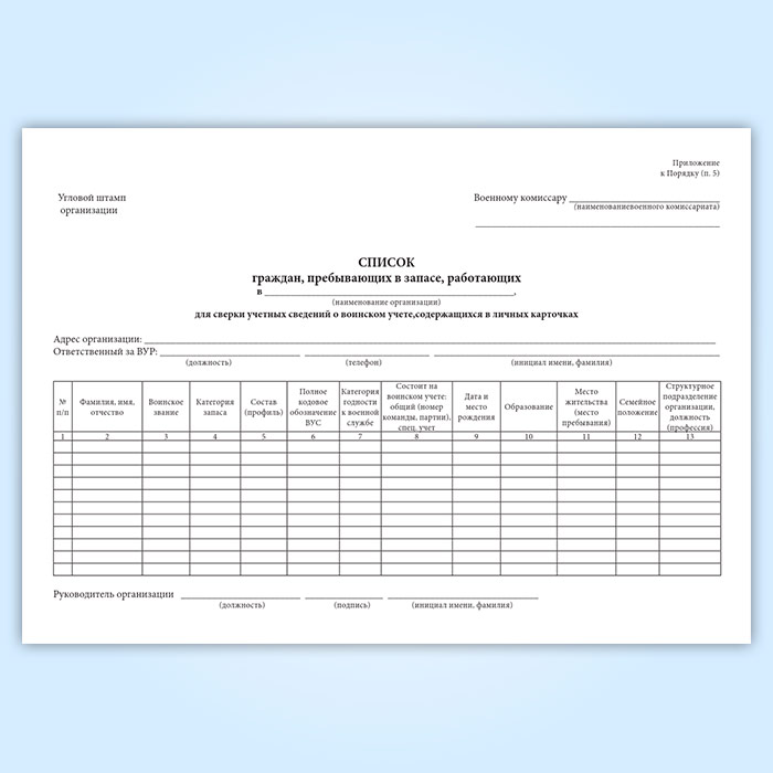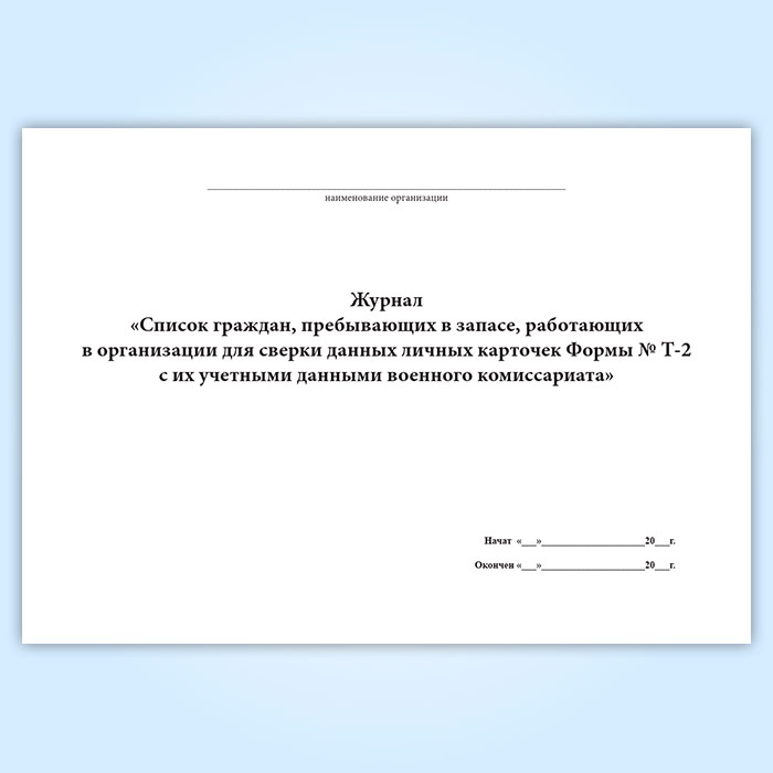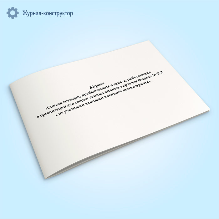 Журнал «Список граждан, пребывающих в запасе, работающих в организации для сверки данных личных карточек Формы № Т-2 с их учетными данными военного комиссариата» в Фрязино купить