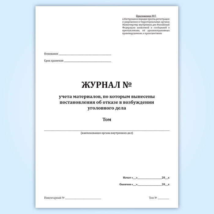 Журнал учета материалов, по которым вынесены постановления об отказе в возбуждении уголовного дела в Фрязино купить