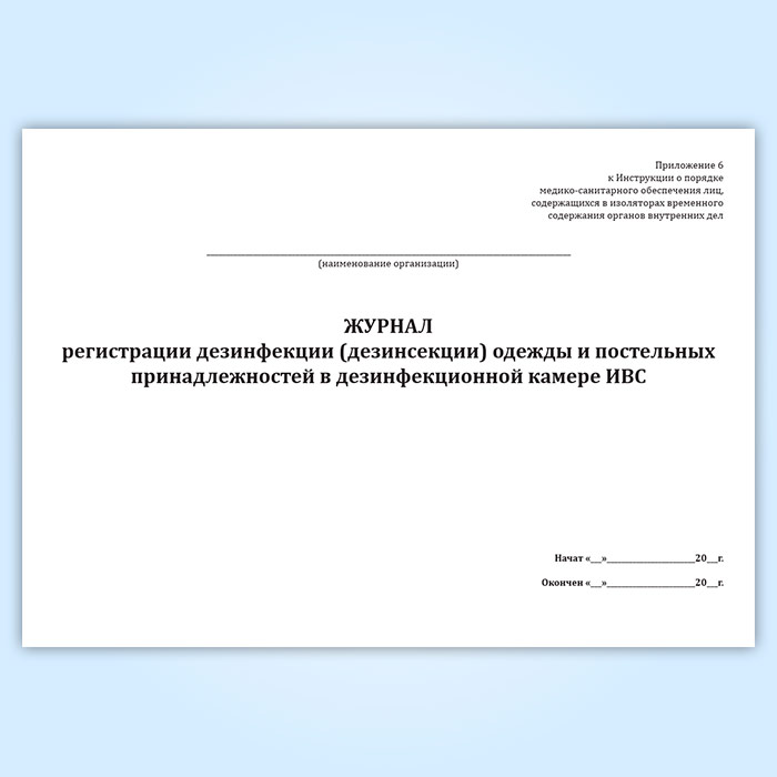 Журнал регистрации дезинфекции (дезинсекции) одежды и постельных принадлежностей в дезинфекционной камере ИВС в Фрязино купить