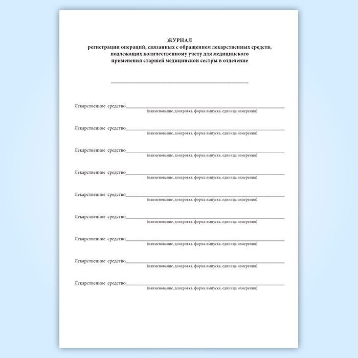 Журнал регистрации операций, связанных с обращением лекарственных средств, подлежащих количественному учету для медицинского применения старшей медицинской сестры в отделение в Фрязино купить