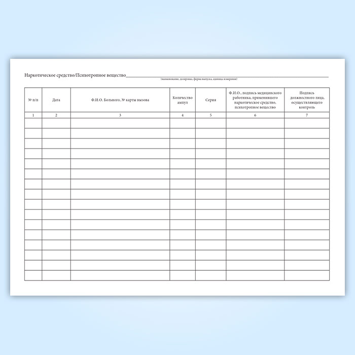 Журнал регистрации операций, связанных с оборотом наркотических средств и психотропных веществ, старшего по бригаде медицинского работника в Фрязино купить