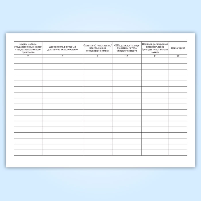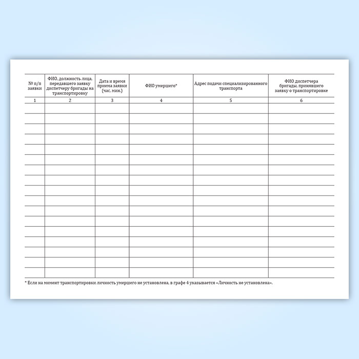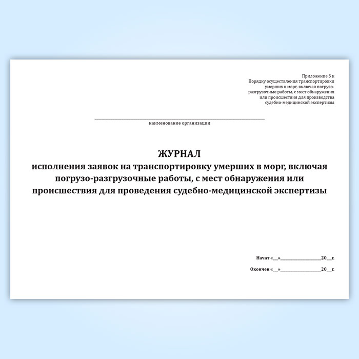 Журнал исполнения заявок на транспортировку умерших в морг, включая погрузо-разгрузочные работы, с мест обнаружения или происшествия для проведения судебно-медицинской экспертизы в Фрязино купить