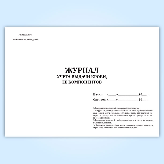 Журнал учета выдачи крови, ее компонентов в Фрязино купить