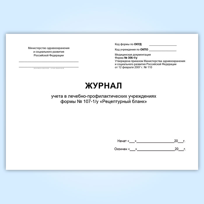 Журнал учета в лечебно-профилактических учреждениях рецептурных бланков формы № 107-1/у (форма № 306-1/у) в Фрязино купить