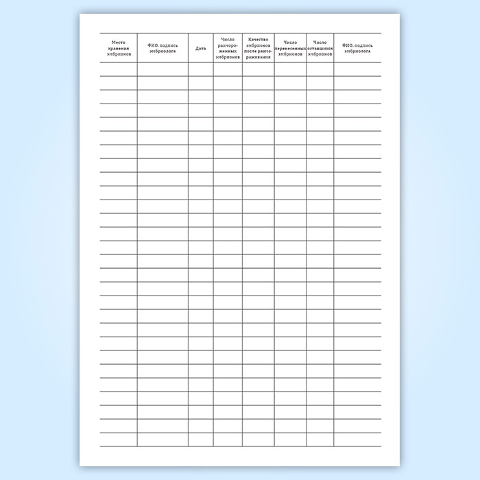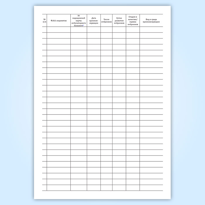 Журнал учета, хранения и использования криоконсервированных эмбрионов пациентов в Фрязино купить